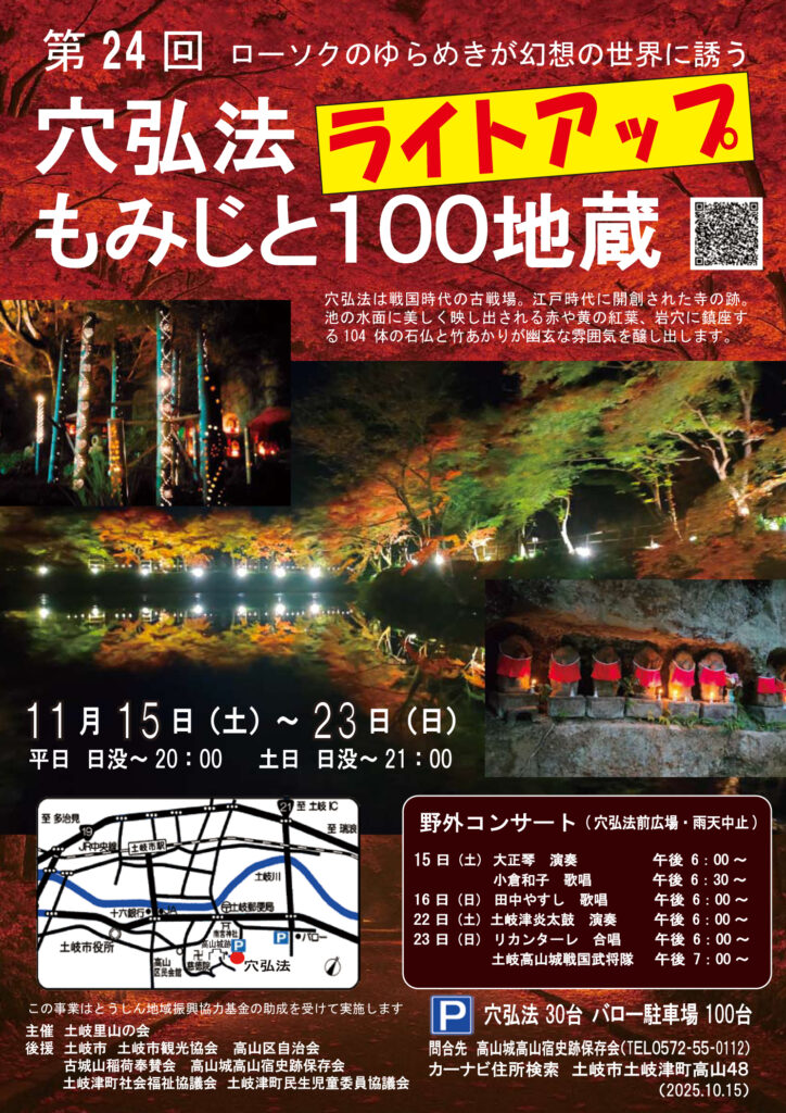 今年も土岐市高山の穴弘法でもみじライトアップが開催されます✨✨