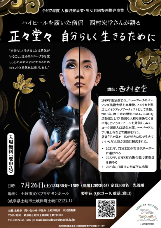 7/26(土)ハイヒールを履いた僧侶【西村宏堂】講演会開催