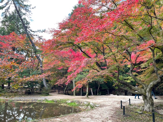今年は暖かく、例年より紅葉の色づきは遅いです。