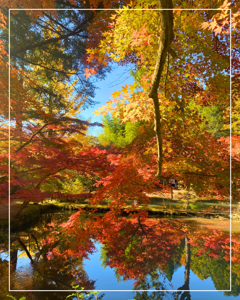 特に池に映り込んだもみじは、まるで鏡のように美しく、思わず立ち止まって見入ってしまうほど✨