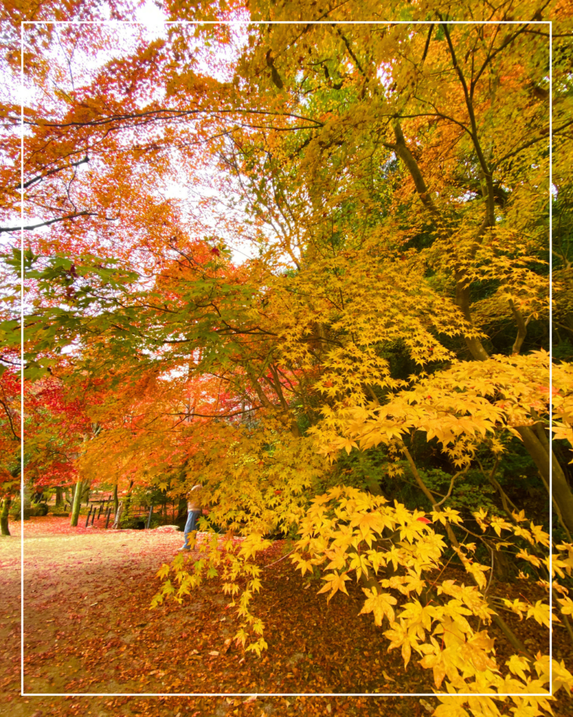 静かに色づく園内は、晩秋ならではのしっとりした美しさがあります。