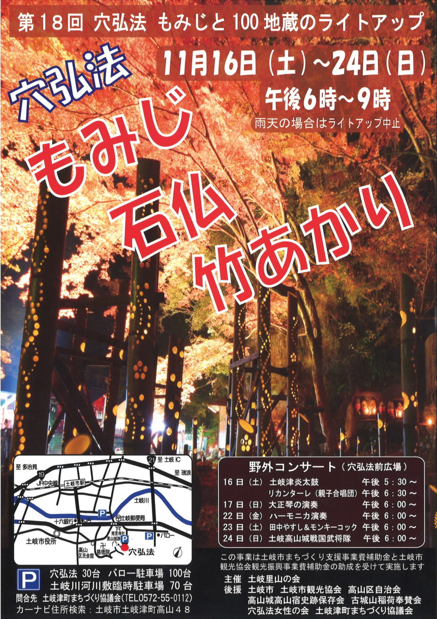 穴弘法 もみじと100地蔵ライトアップが、今年も開催されます。