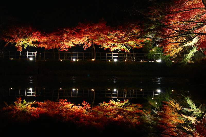 土岐高山城跡の麓にある穴弘法で、もみじのライトアップが行われます。池に映った逆さもみじ、100を超える石仏に灯されたローソク、竹に無数の穴を開けあかりを灯した竹あかりが神秘的で幽玄な世界を演出します。