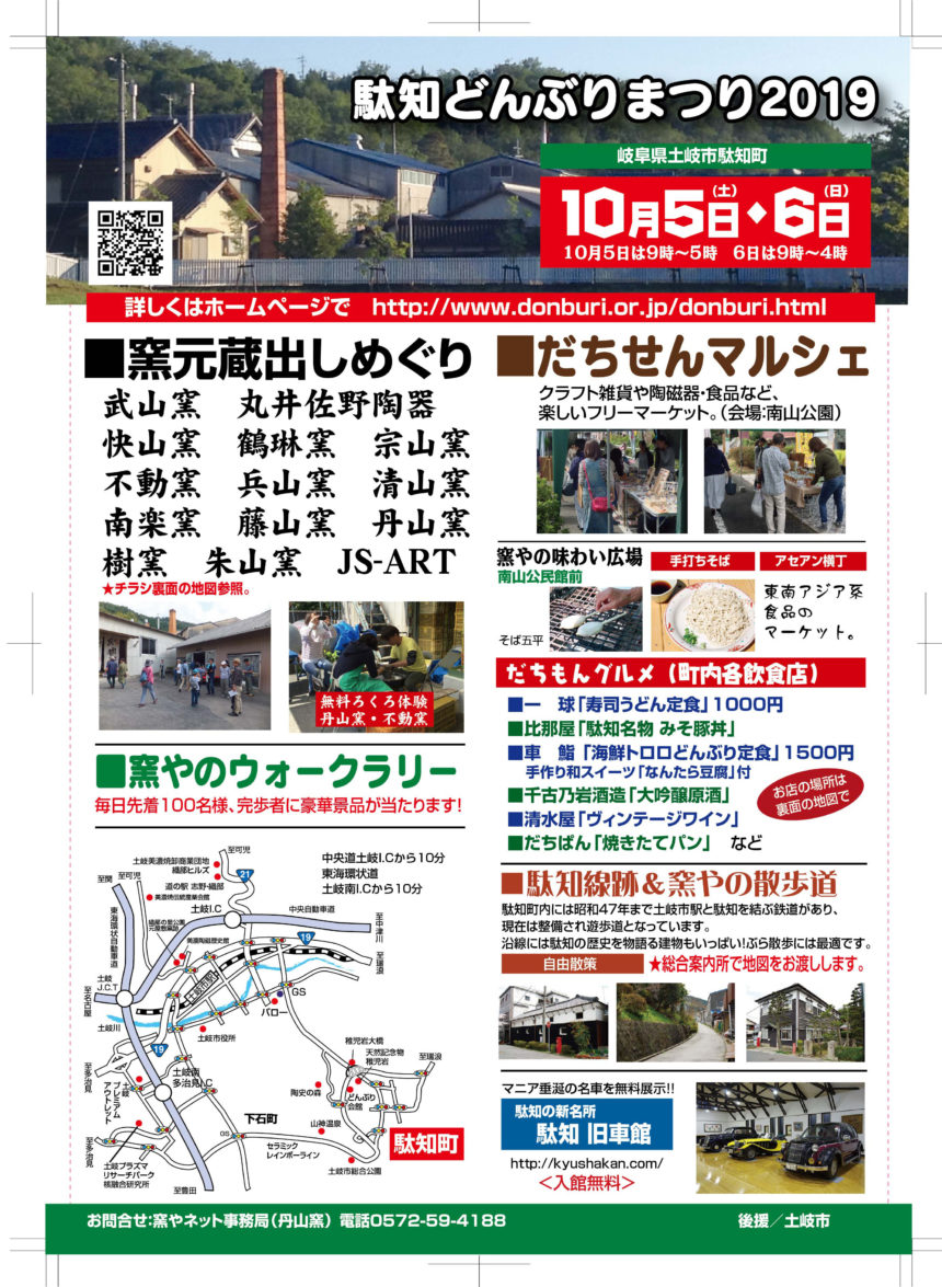 窯元を巡ったり、買物したり、美味しいものを食べたり、駄知線跡を散策したり、名車を見学したりと今年も盛りだくさん!皆さんのお越しをお待ちしてます。