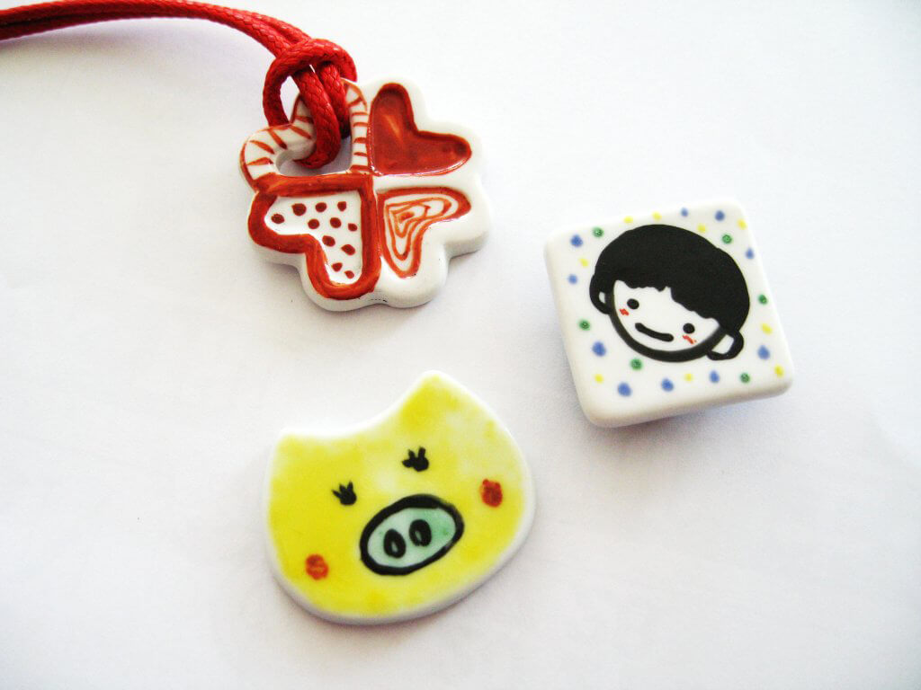 陶器のパーツに絵付けをしていただき、その場で焼き上げます。