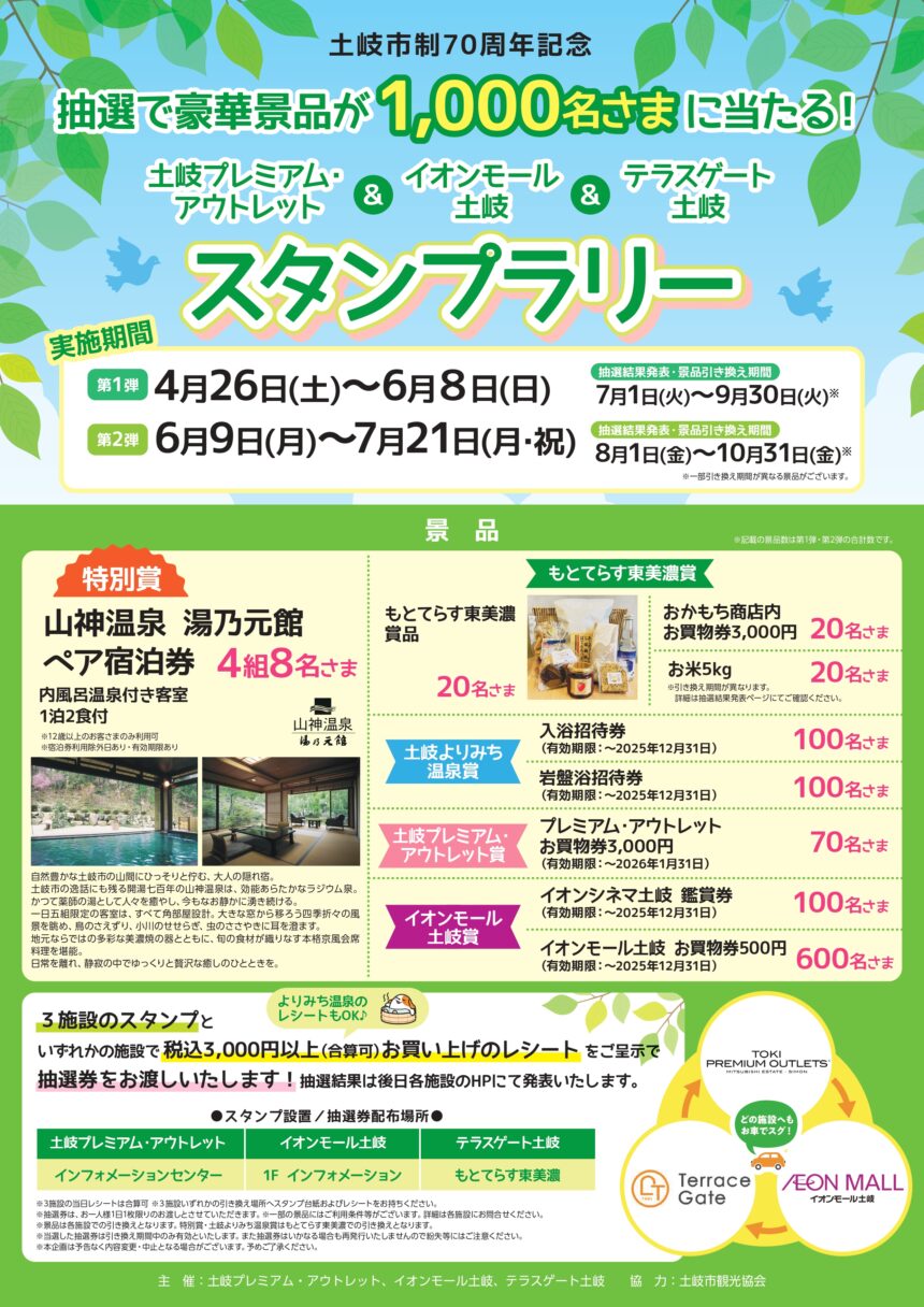 土岐プレミアム・アウトレット、イオンモール土岐、テラスゲート土岐の3施設を周遊してスタンプを集めていただき、