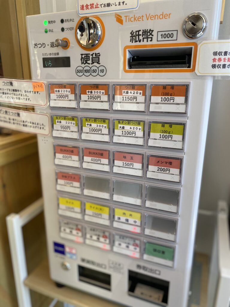 今回は【つけ麺】中盛(麺300g)1,050円と【魚ダシ割つけ麺】並盛(麺220g)950円を注文。