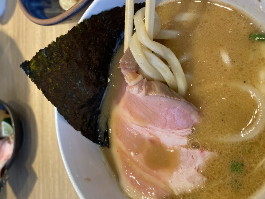チャーシューもこだわっていて、レアと厚切りの2種類がいただけます。