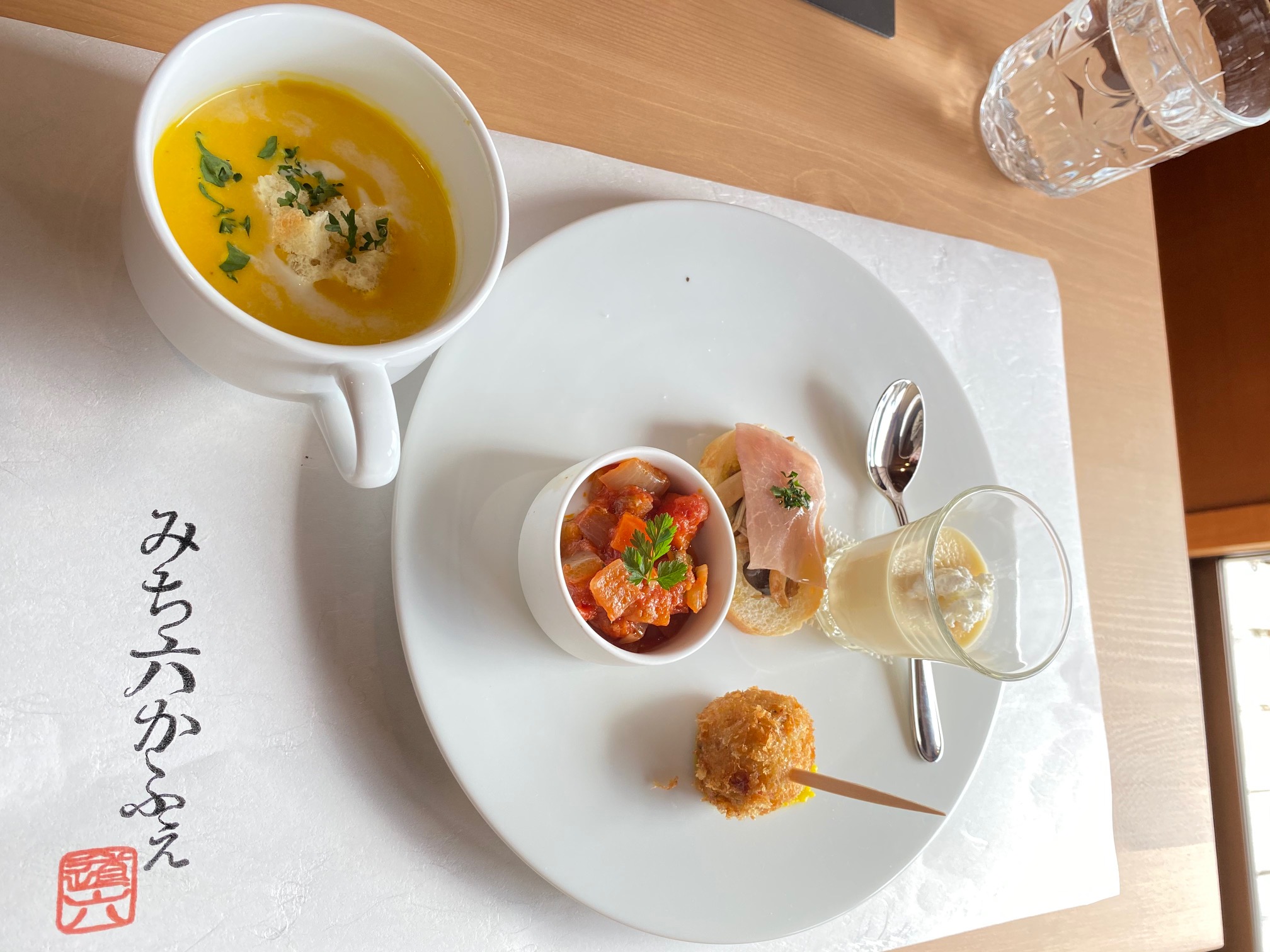 おすすめランチのスープカレーセット(1,980円)を注文。前菜やデザートプレート、ドリンク付きです 🙂