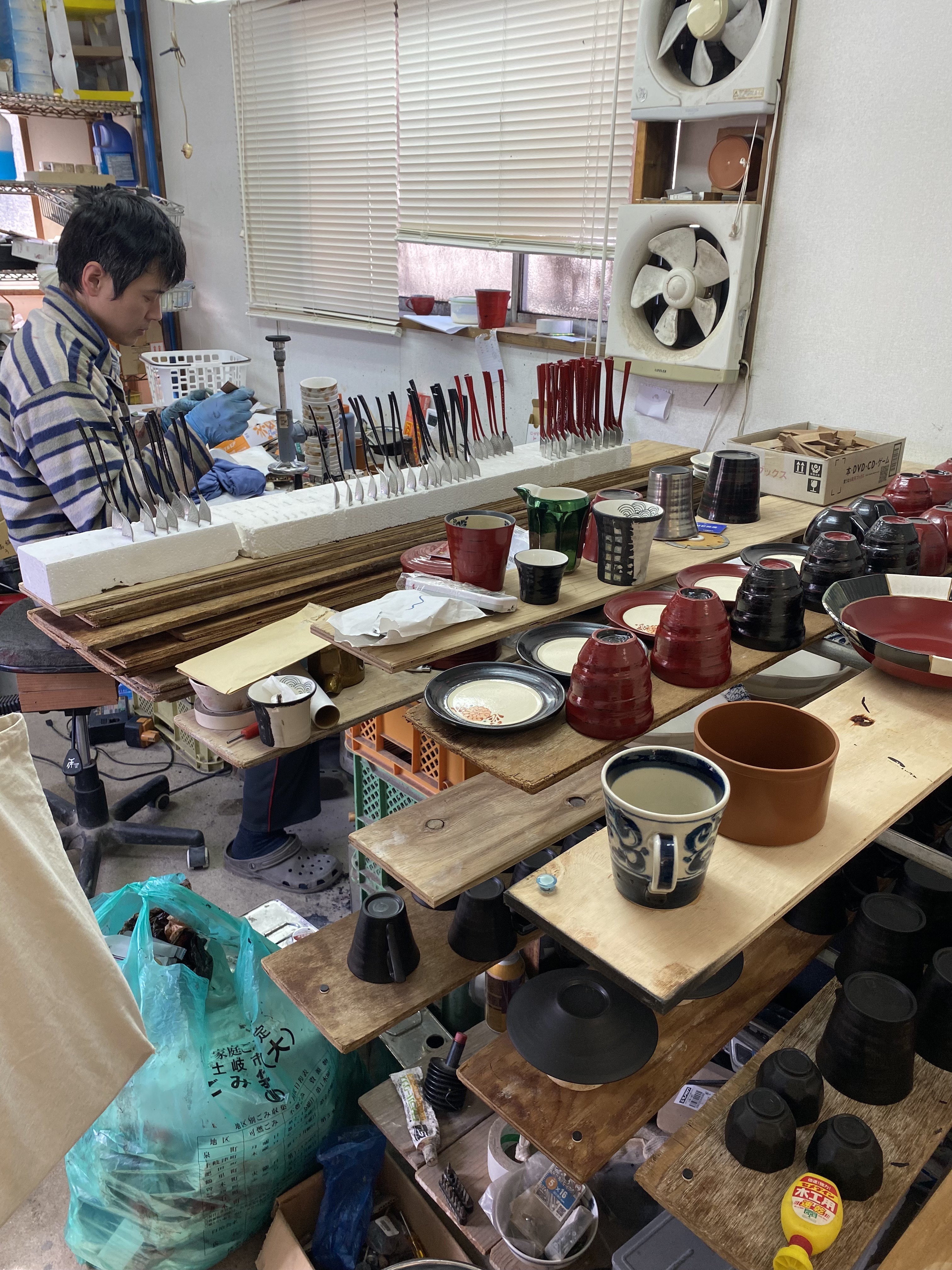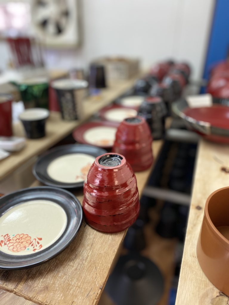 宗山窯さんでは、陶器に天然素材の漆を施した【漆陶】を作っています。漆のしっとりとした手触りと心地よい重量感を感じさせる陶器に、魅了させられます。