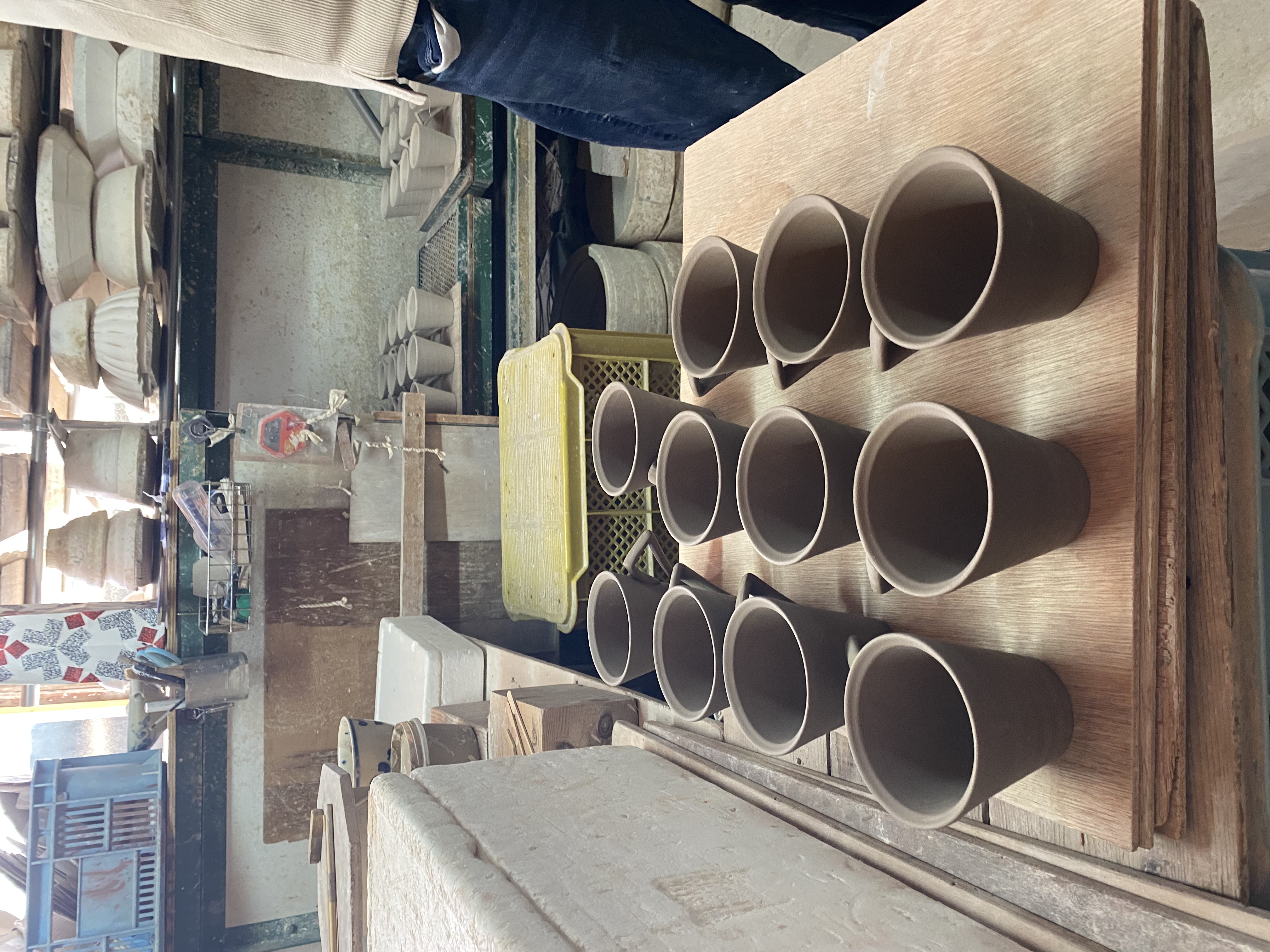 宗山窯では、工場見学や作陶体験もでき、そのための通路整備やロクロ体験スペースの改修を行いました。