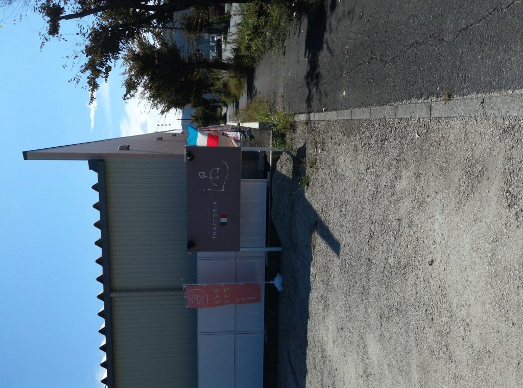 入口の駐車場の看板とイタリア国旗が目印です。