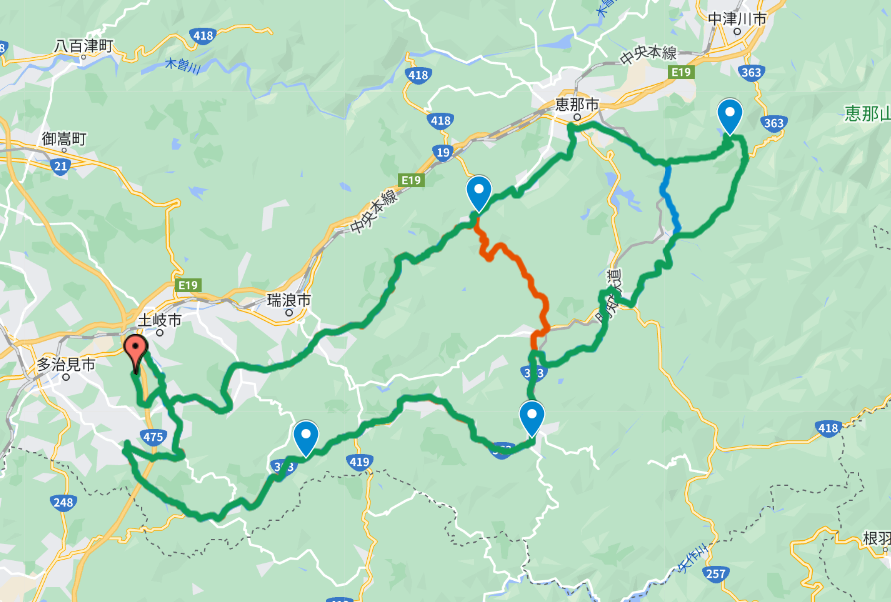 ①土岐市【曽木公園】②恵那市【大正村】③恵那市と中津川市にまたがる【根の上高原】④恵那市【道の駅らっせいみさと】