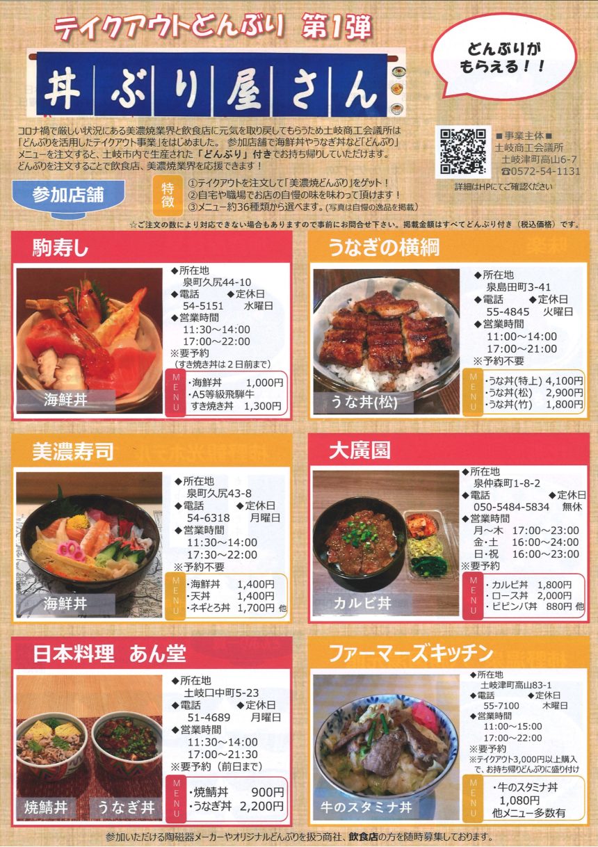 詳しくは土岐商工会議所どんぶりテイクアウト事業まで(0572-54-1131)