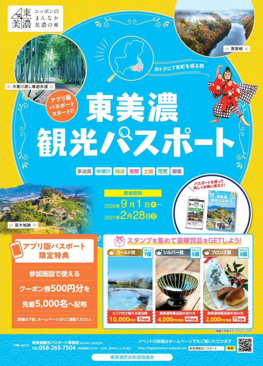 東東美濃歴史街道協議会が行う「東美濃観光パスポート」が9/1(火)からスタートしました。東美濃エリアで自然、歴史、文化、食など、地元の良さを再発見しながらスタンプラリーを楽しむことができ、土岐市からは42施設が参加しています。今回からはアプリ版も導入され、先着でお得なクーポンも発行されます。