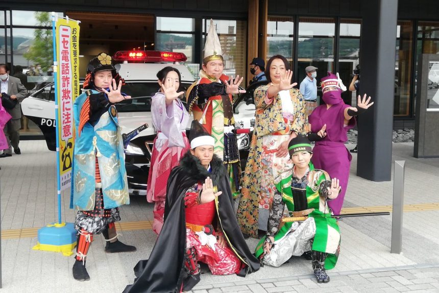 土岐高山戦国武将隊が、多治見署の防犯動画【ストップ!ニセ電話詐欺】に出演しました!
