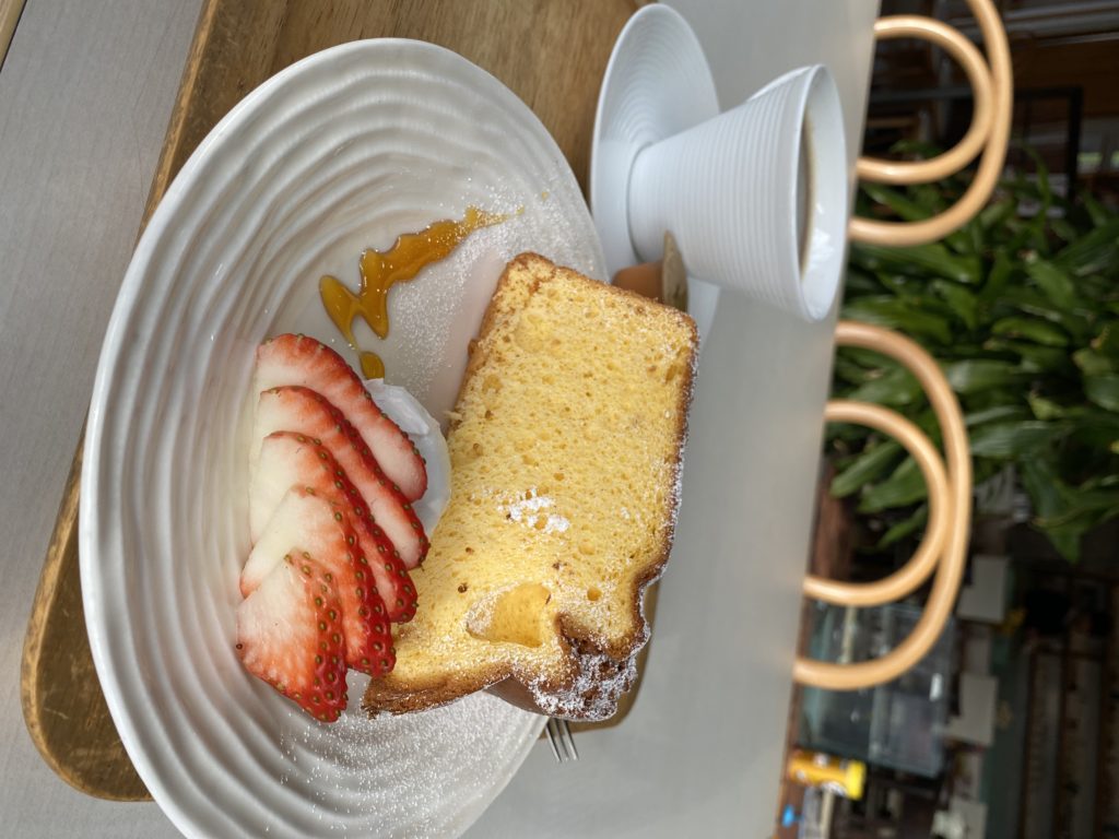 ふわふわでおいしい~~ コーヒーによく合います♪♪ 季節の果物とクリームがトッピングされていますよ 🙂