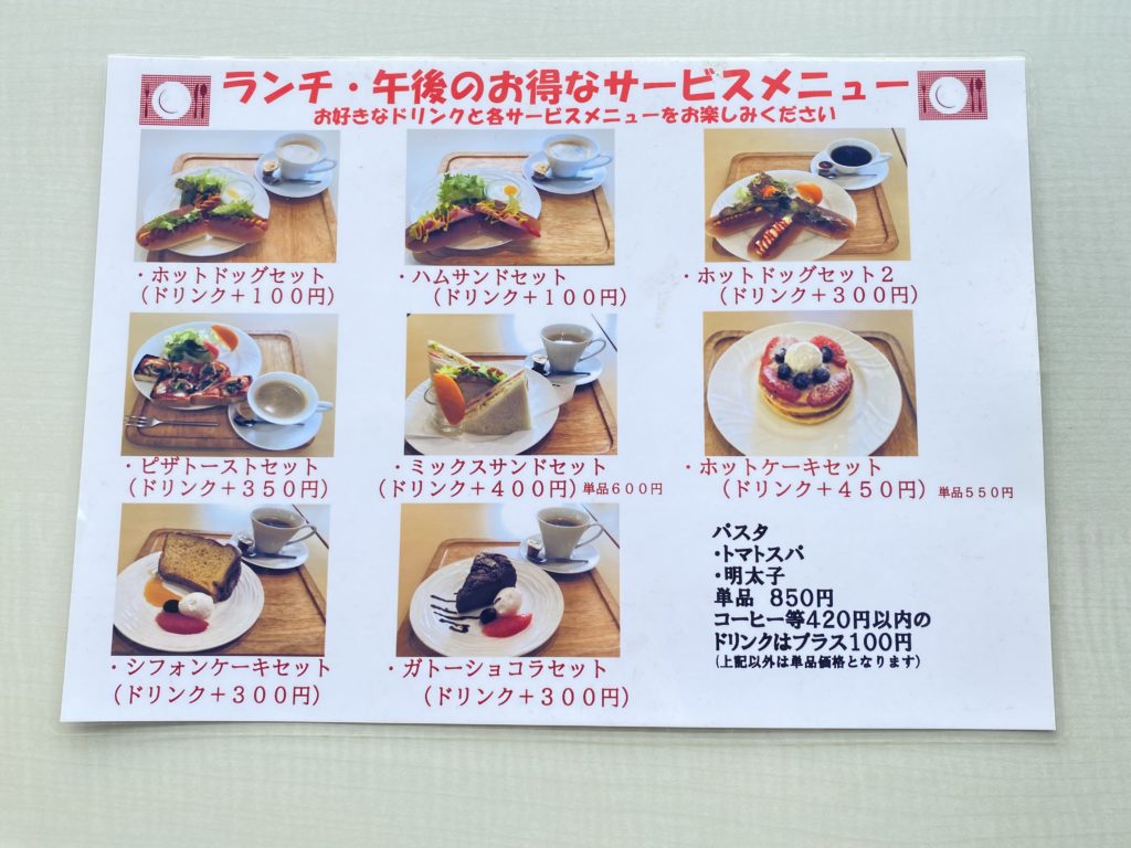 ホットドックセットとハムサンドセットは、ドリンク代+100円で8:00~18:00まで楽しめますよ 🙂