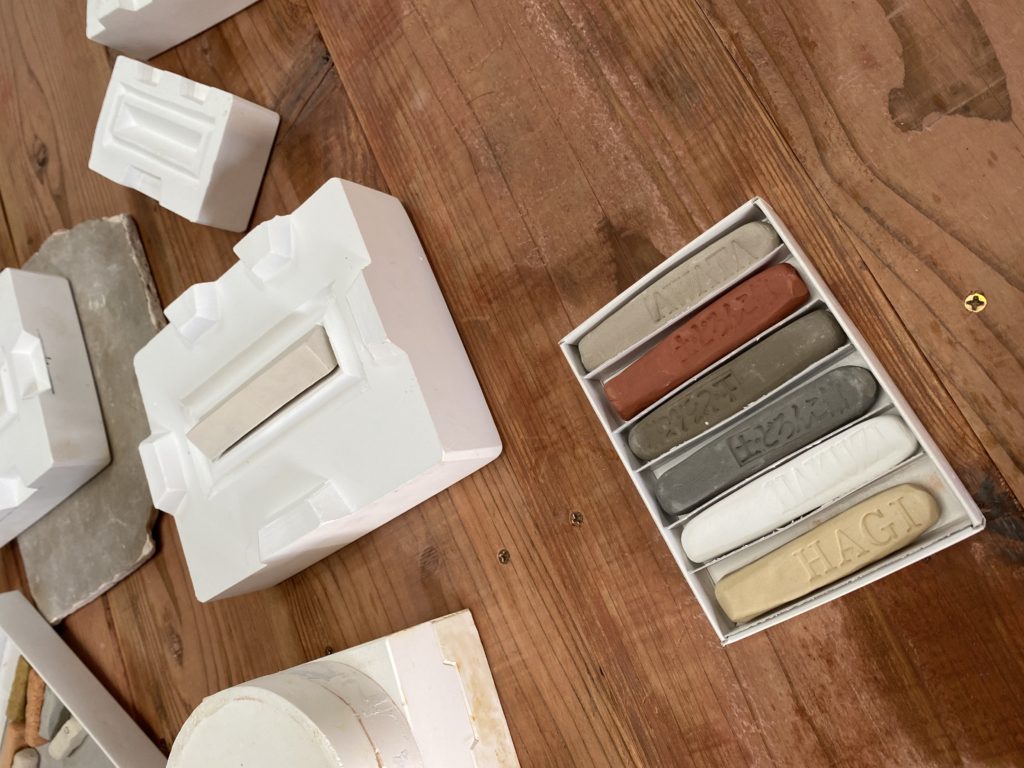 オープンファクトリー事業でワークショップのための、小さな窯・テーブル・クレヨンの型を作成しました!