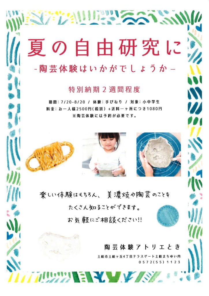 夏の自由研究に、陶芸体験はいかがでしょうか。楽しい体験はもちろん、美濃焼や陶芸のことをたくさん知ることができますよ。