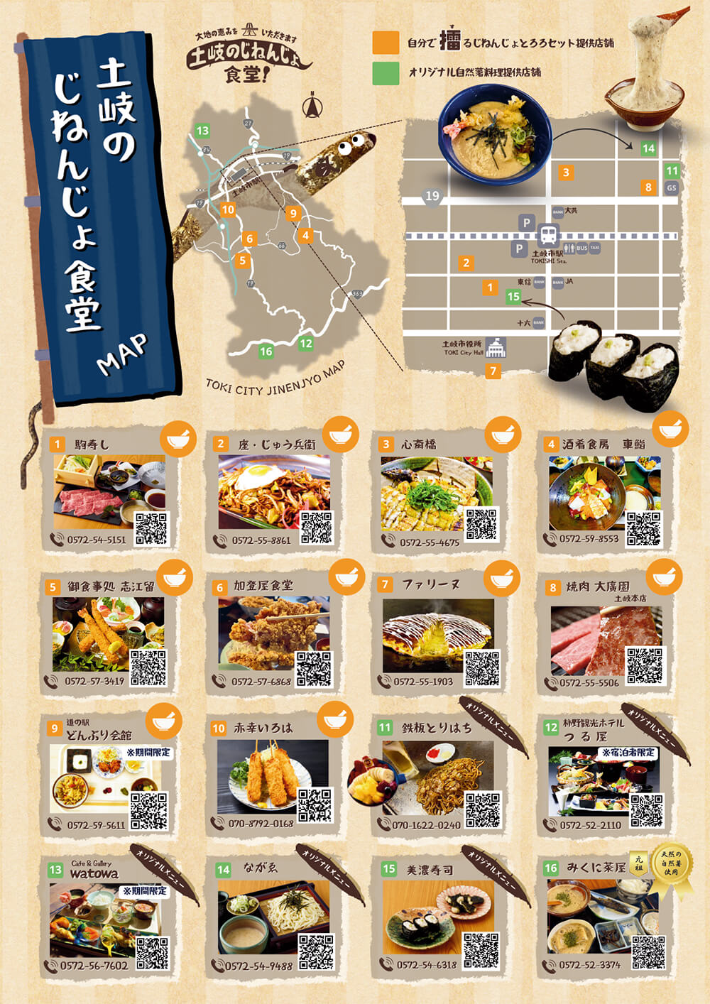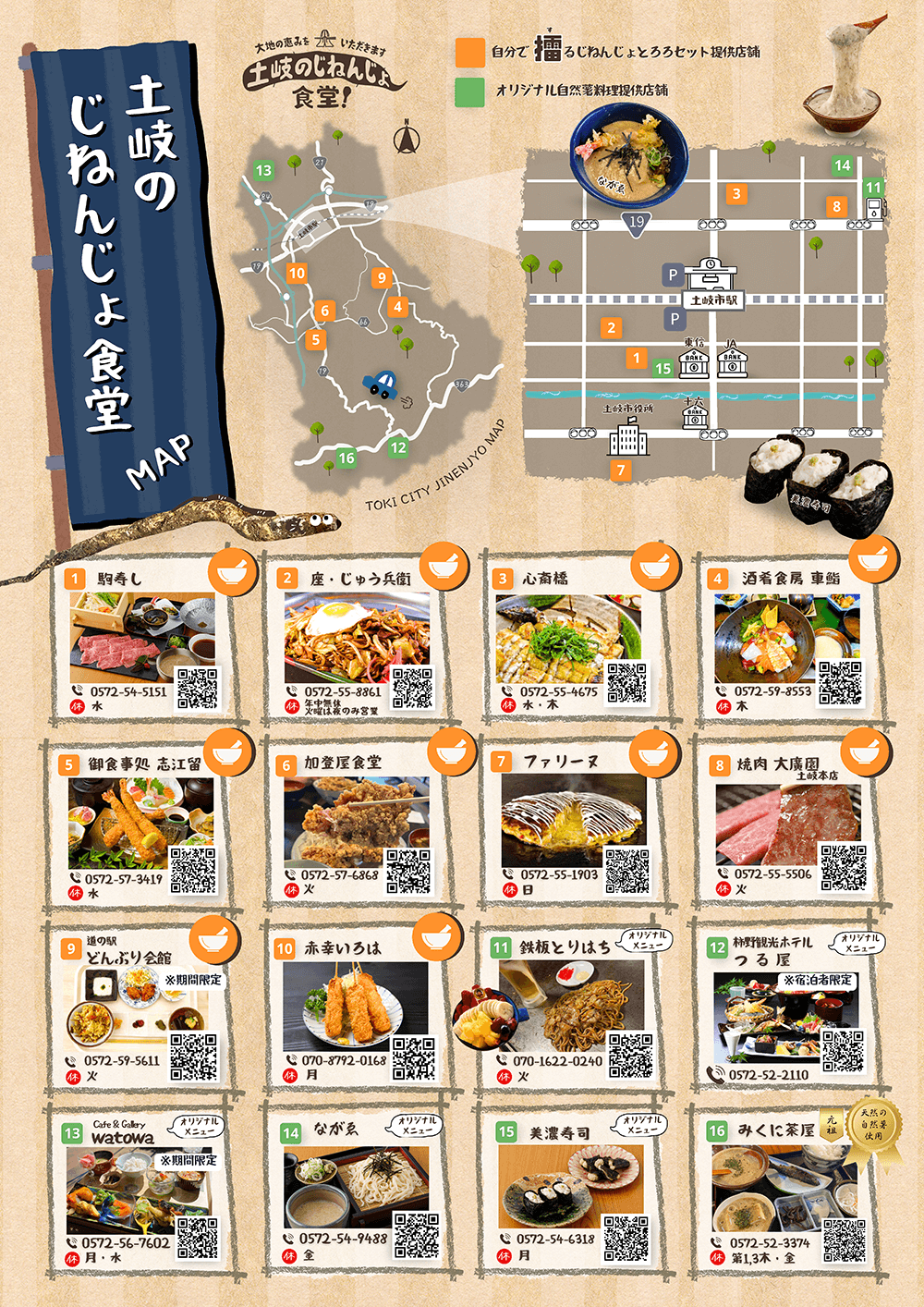 このように土岐市では、自然薯は特別な時に食べる高級食材として認知されていましたが、土岐市の味をぜひ市内外の方にも気軽に味わっていただきたい、一年中この大地の恵みを多くの人々に味わっていただきたい。そんな思いから、このたび市内の飲食店が中心となって「土岐のじねんじょ食堂」というグループを結成しました。