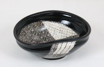 ひねった形は和食器特有の遊び心を、描かれた幾何学文様は伝統的な黒織部の雰囲気を醸し出しています。