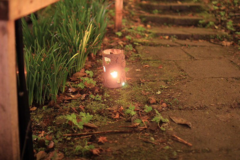 また、崖の穴に安置された石仏がローソクにゆらめき幻想の世界に誘う。