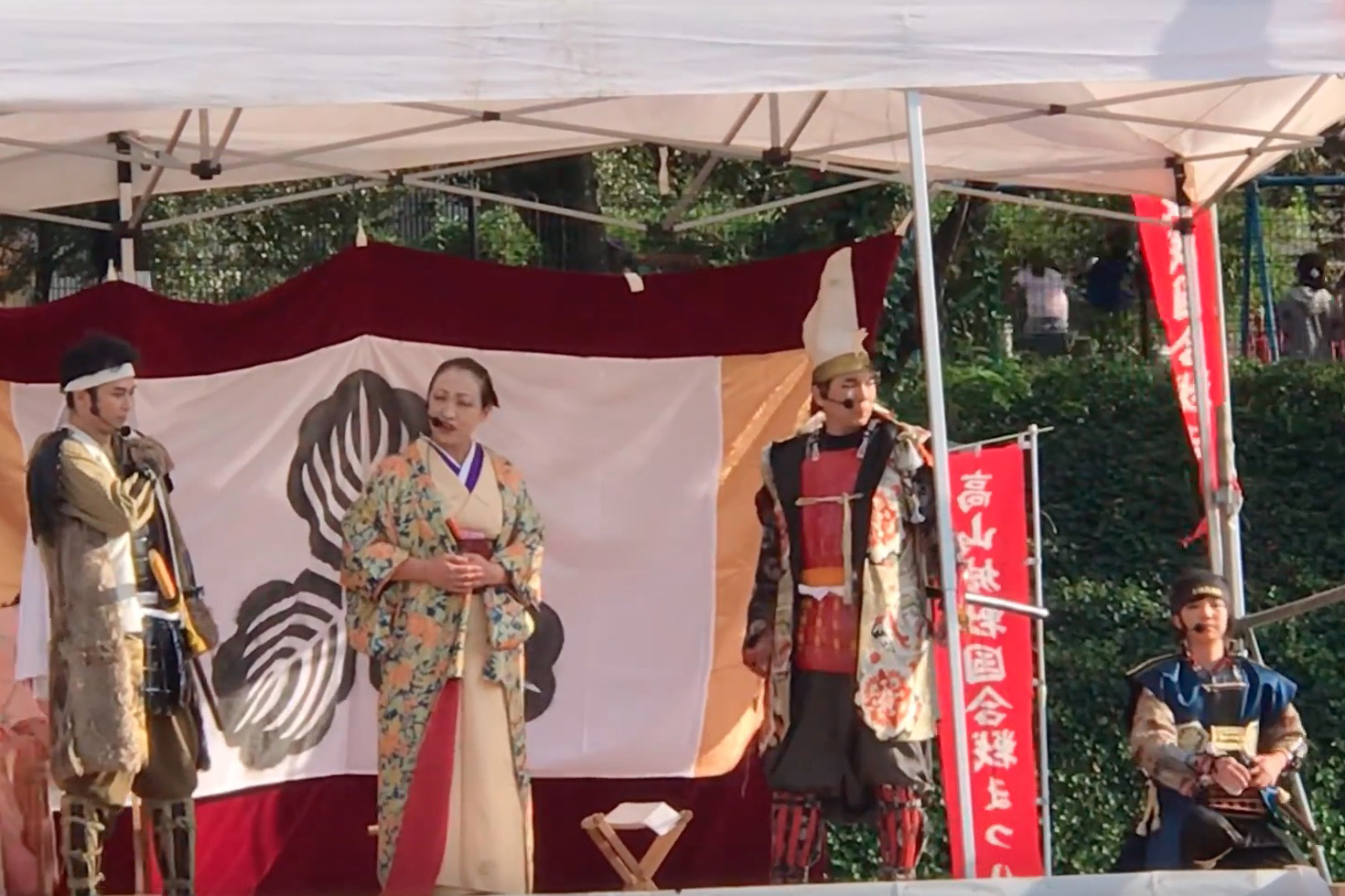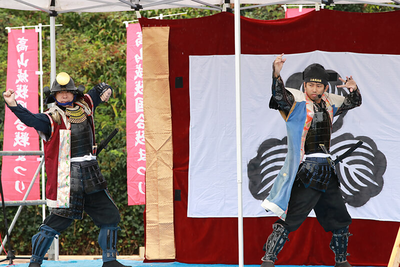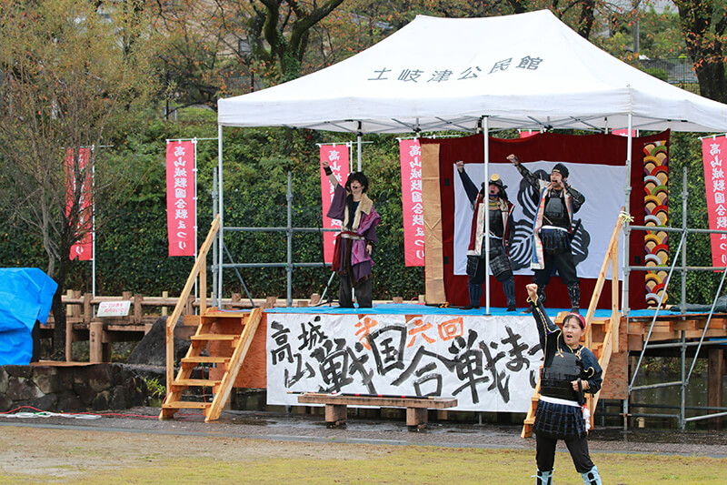 市内外各地のイベント行事に出陣し、オリジナルの戦国演劇や戦国バサラ踊りの演舞、殺陣、勝ち鬨などをもって盛り上げます。毎年10月には「土岐高山城戦国合戦祭り」が行われる。