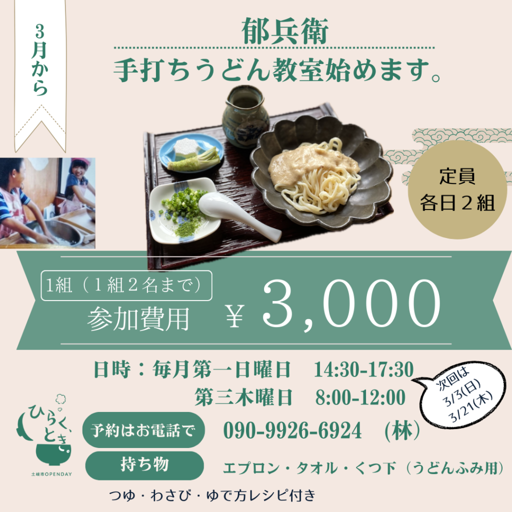 【手打ちうどん郁兵衛】うどん教室始めます。