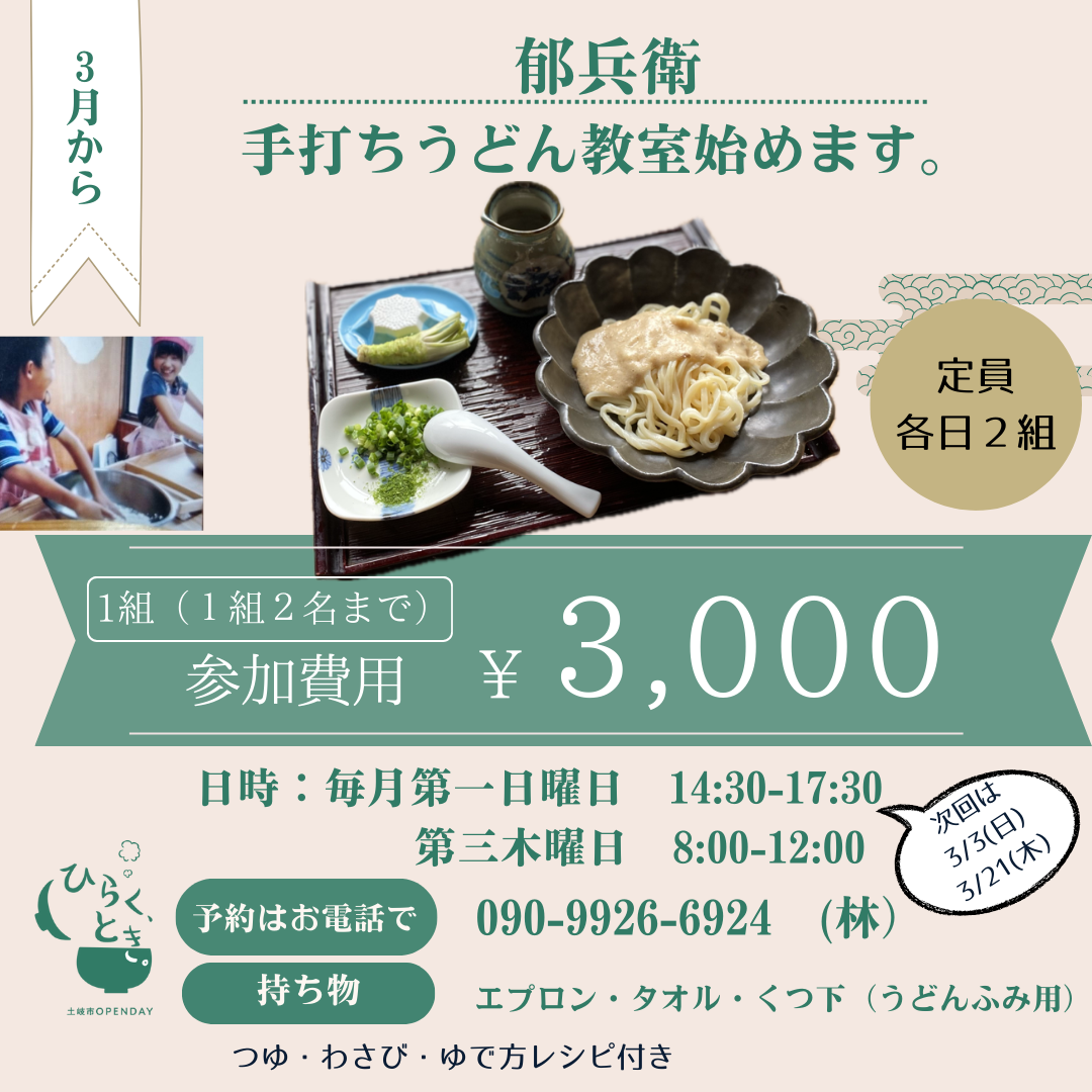 土岐市下石町の【手打ちうどん郁兵衛】が3月からうどん教室を始めます!