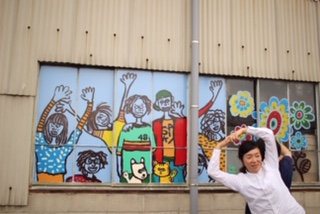 今回のぺインターさんは、市内の公民館などで講座や幼稚園等でワークショップ、各種イベントで活躍している「BURABURA MIPO」さんに描いていただきました。