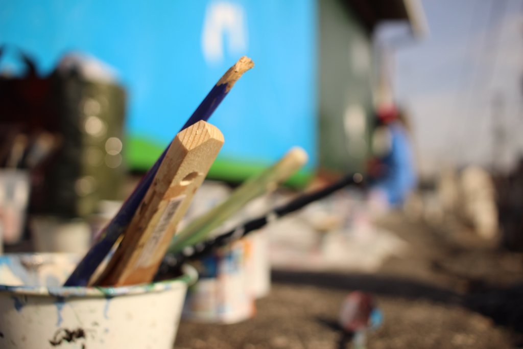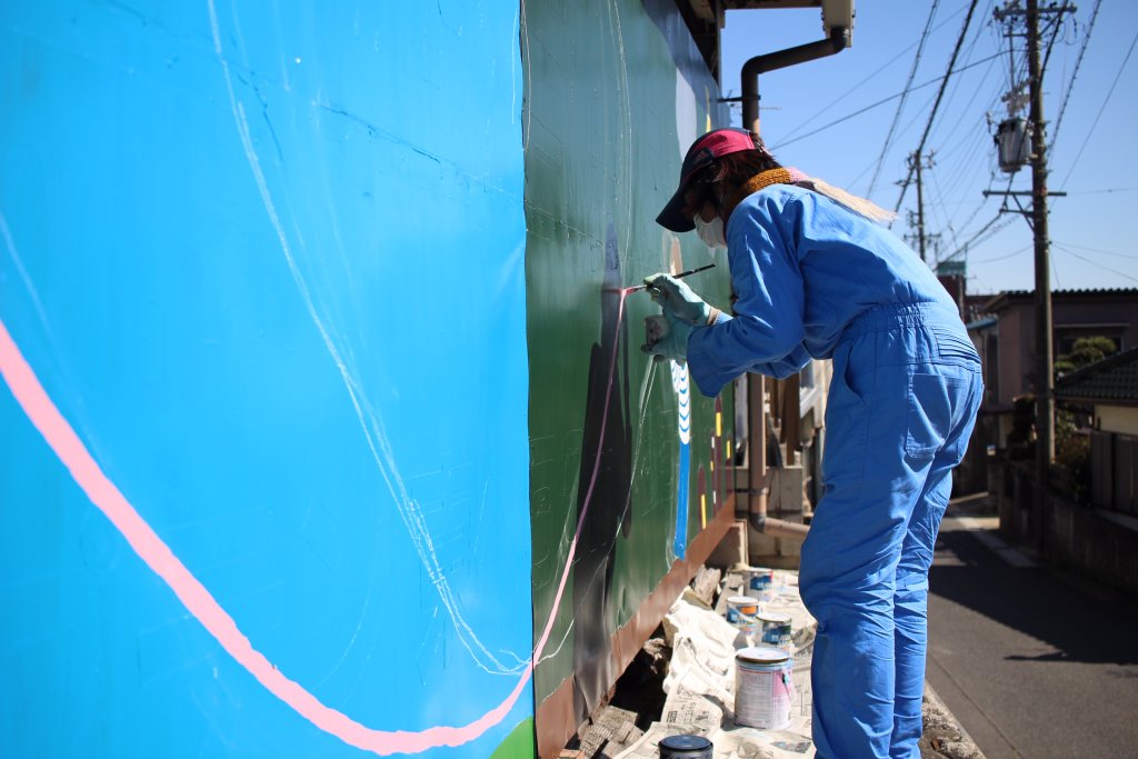 今回、設置したのは泉町にある「金秋酒井製陶所」が所有する大きな看板にペイントさせていただきました。