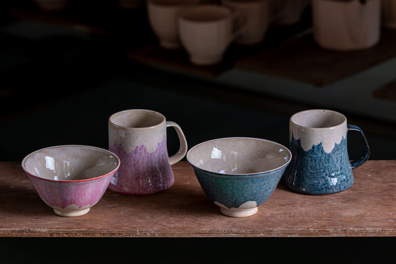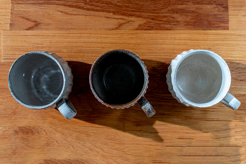 カップ・茶碗類をはじめ、鉢、皿、酒器など様々な形状のものがあります。 特に、袋物と呼ばれるポットや急須を多く扱っています。 使いやすさを一番に考えながら、手にした時に安らぎを感じられるような器をつくっていきたいと思っています。 -